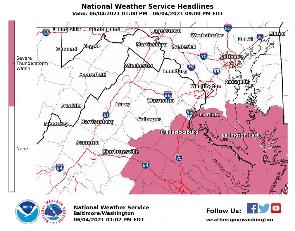 Severe Thunderstorm Watch Maryland - NWS Baltimore-Washington on Twitter: "A Severe Thunderstorm Watch has been issued for parts of ... : In maryland this watch includes 4 counties.